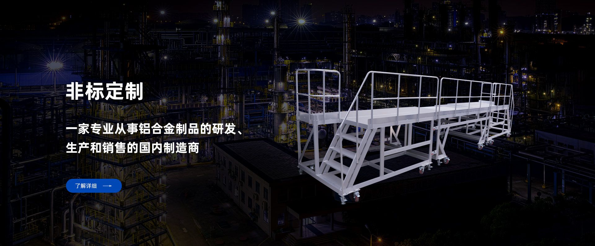 公司目前主要以生产、销售:铝合金脚手架、铝合金工程梯,铝合金登高平台、水电行业检修工装,航空维修工装以及铝合金工业型材类组装产品。公司可根据客户需求专业定制各类设备配套用梯、以及铝合金深加工业务...