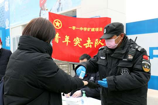 检查中项目管理人员介绍,项目部严格落实相关政府部门工作部署要求,第一时间成立疫情防控应急领导小组,对未离京项目人员进行防疫宣传,包车接回返岗人员进行登记备案,及时隔离观察;项目实行封闭式、分区域管理,设立隔离间并储备充足的疫情防控物资;项目人员一天测量两次体温并做好台账记录;食堂采取分时段进餐制,同时用隔板将餐桌隔断,尽量减少人员接触;项目大门区域由值班人员定时消毒,各门岗做好进入登记检查消毒等防疫措施。“项目自正式复工以来,按照有关防疫规定和安全管理要求做了许多工作。制定了详细的复工方案和防控应急预案,压实安全管理工作,及时发现和处置安全隐患,确保施工安全。”项目经理徐刚说。