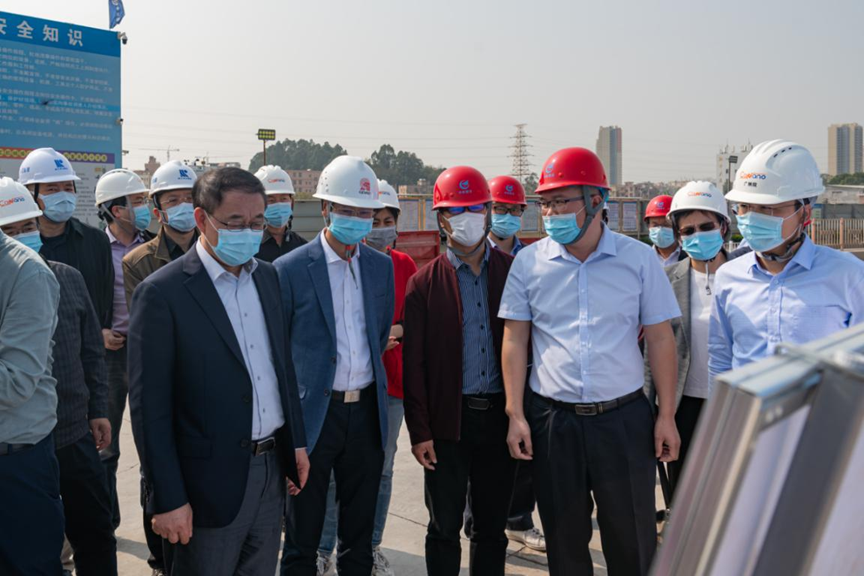 赵院士一行到达施工现场后,详细听取了项目总指挥徐刚对工程总体部署和安全、质量、进度管理方面工作的汇报,着重关注了BIM+5D智慧工地信息化管理平台在项目上的应用情况。