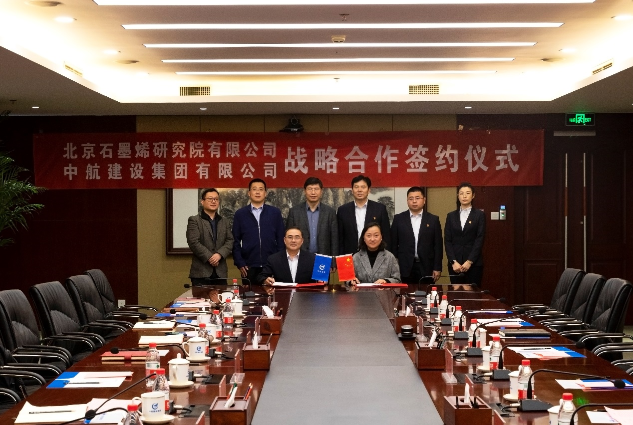 北京石墨烯研究院有限公司筹备组组长张华,筹备组副组长魏迪,研究院相关部门领导,呼和浩特赖瑞物业维护管理有限公司常务副总经理陈清,副总经理、总工程师陈劲,副总经理宋利坡,副总经理郝以朋,集团公司相关部室领导出席签约仪式。